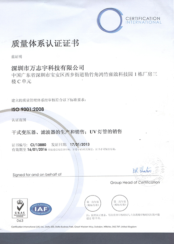 萬(wàn)志宇I(lǐng)SO9001:2008